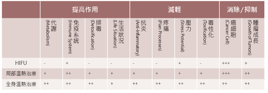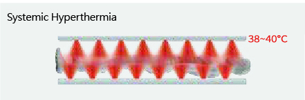 - 全身溫熱療法 (Wholebody Hyperthermia)- 最近受歡迎的方式是以近紅外線為中心的Hydro-light照射全身,使全身溫度升高到38-40° C。