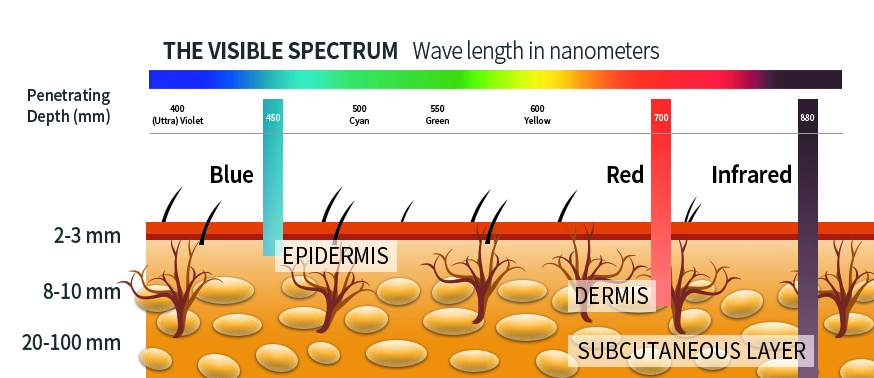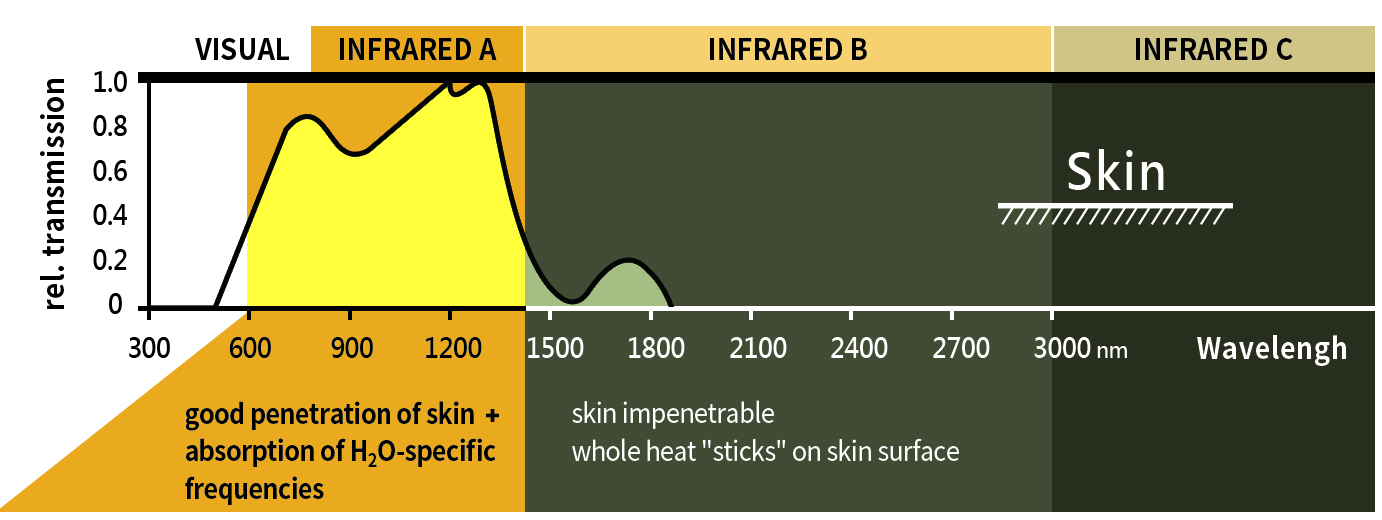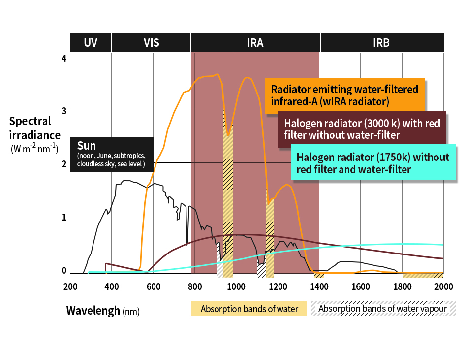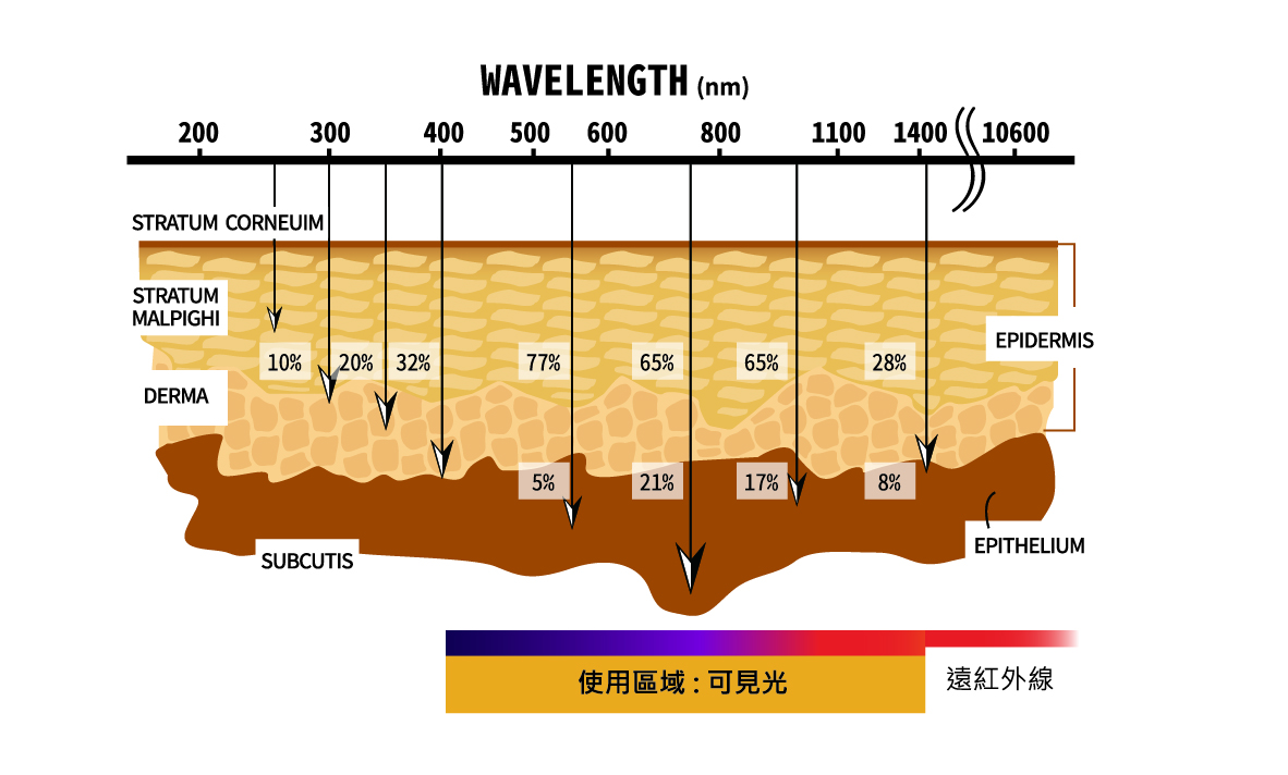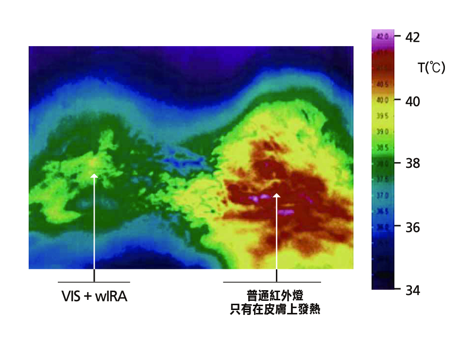 Hydro-Light技術即是國際wIRA技術的延伸,保留人體最需要的「600nm~1400nm」波段,而一般國際定義的紅外線波段為: